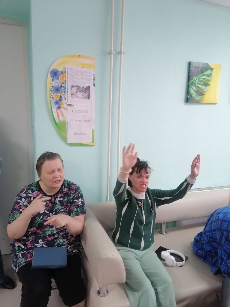 Получатели социальных услуг не только внимательно слушали рассказ, но и наслаждались музыкальными клипами. Под звуки песен, в том числе под знаменитую “Я желаю счастья вам”, кто-то даже пустился в пляс, создавая атмосферу веселья и радости. Это мероприятие было приурочено к декаде инвалидов, что добавило особый смысл и значимость происходящему.