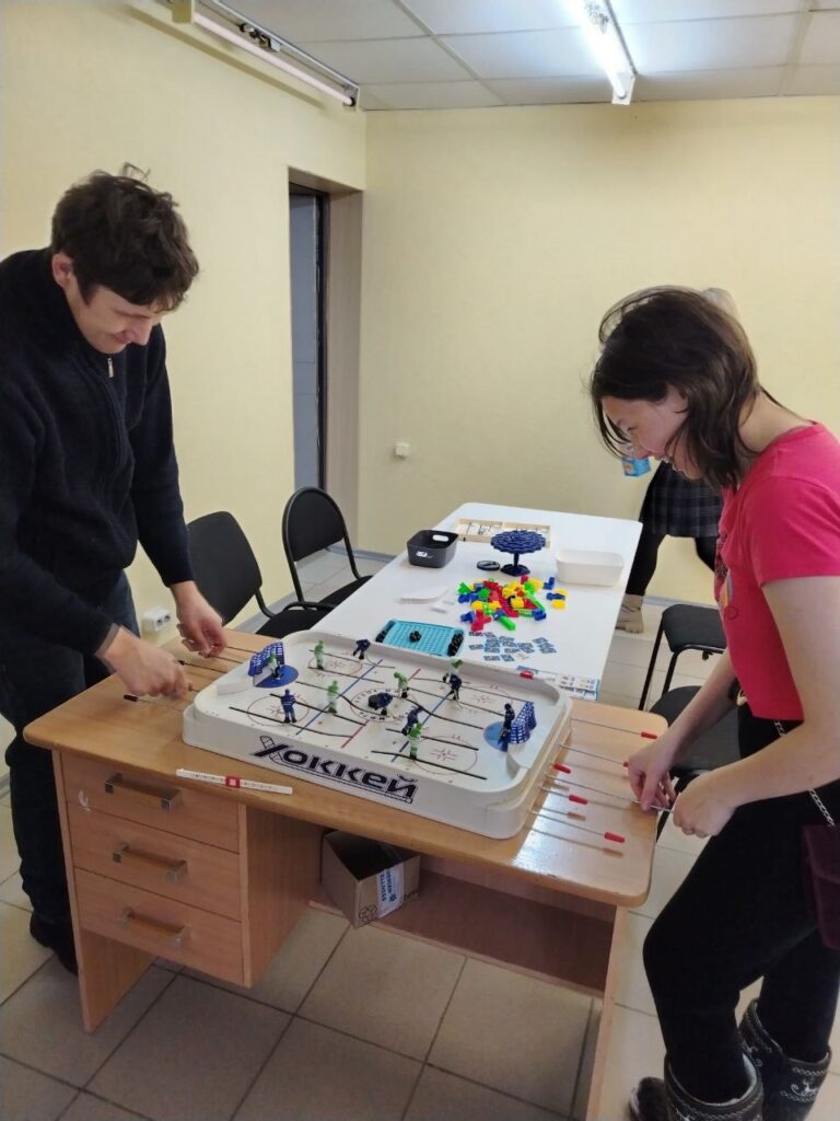 Для детей были подобраны несложные настольные игры: магнитный бой, настольный хоккей, балансир. Ребята с удовольствием и азартом соревновались друг с другом.